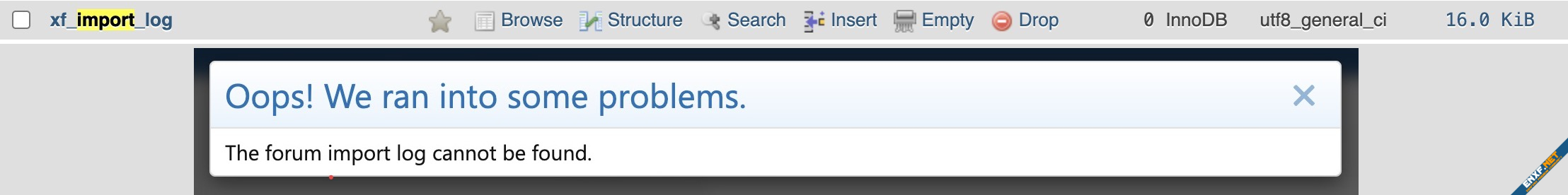 @5je7taxs I am getting this error as there is no xf_import_log table in the database I used xf_admin_log and xf_feed_log at two different times and got the same error for both also import log field was necessary.