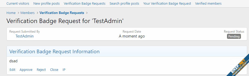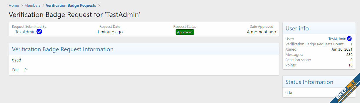 User's account info/details in request page ("Verification Badge Requests Count" will also show user's all requests)