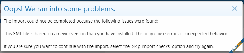 you use xf low version of style if want use to check "Skip import checks" when import it.