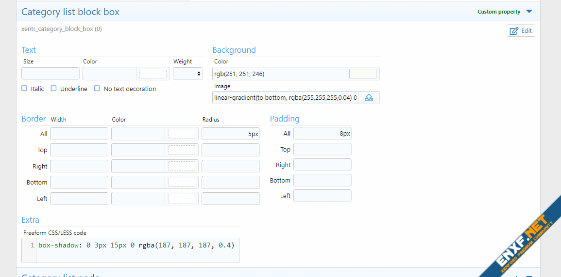 Appearance > StylesRyzer > Style properties > Node/forum list